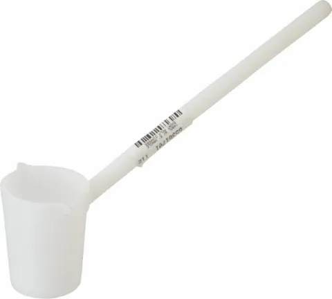 Fabricated in the USA of high density polyethylene, these plastic ladle dippers feature a high-temperature extra heavy duty bowl with securely welded solid handle. Handy for sampling and dispensing corrosive liquids. All sizes are graduated and supplied with 2 pour spouts.