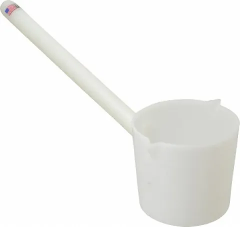 Fabricated in the USA of high density polyethylene, these plastic ladle dippers feature a high-temperature extra heavy duty bowl with securely welded solid handle. Handy for sampling and dispensing corrosive liquids.  All sizes are graduated and supplied with 2 pour spouts.